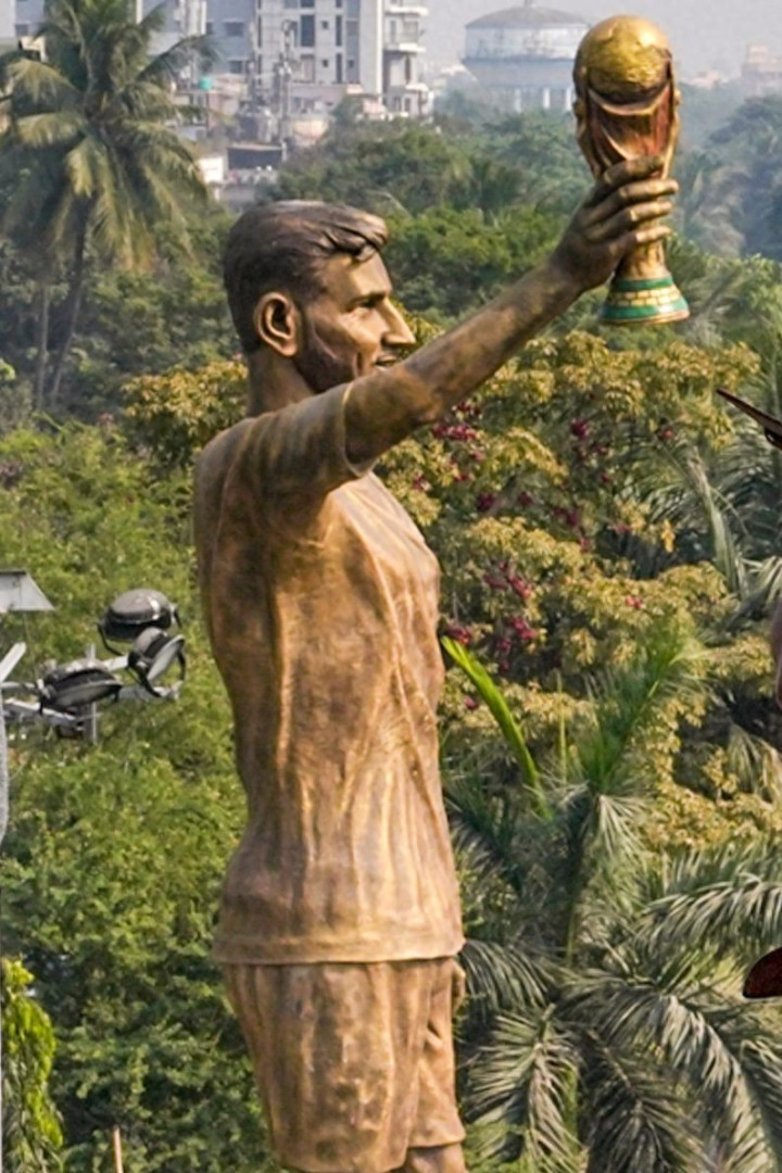 近日梅西开启了印度行,在那里他受到了英雄般的欢迎!在印度的加尔各答,为了致敬梅西,当地立起了一座高达70英尺的雕像——梅西高举世界杯奖杯,这被认为是有史以来最高的足球运动员雕像!